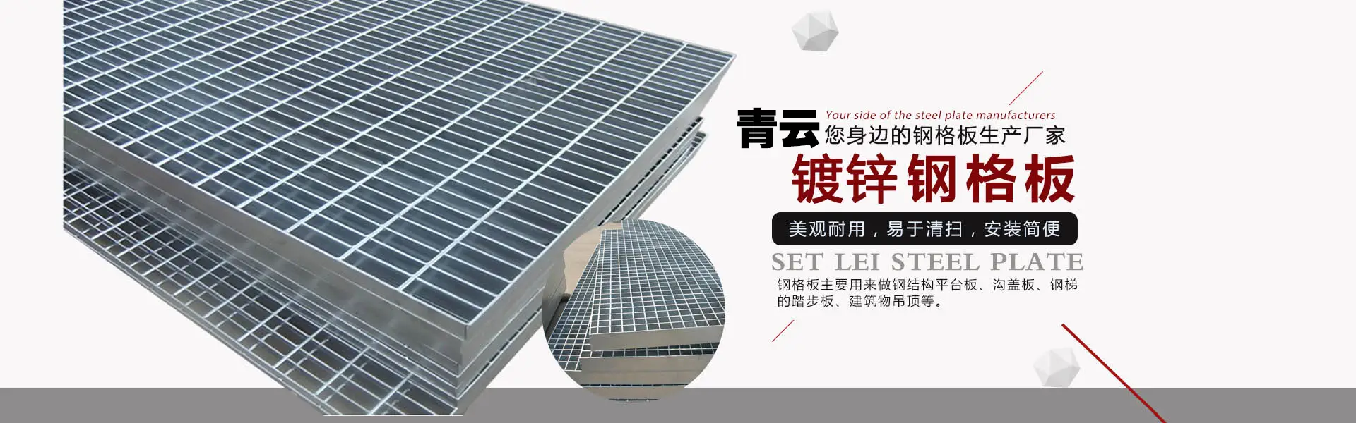 我公司专业生产钢格板、水沟盖板、楼梯踏步板、池盖板、钢格栅板、喷漆钢格板、玻璃钢格板等产品。采用全自动大型压焊生产线,美观牢固。